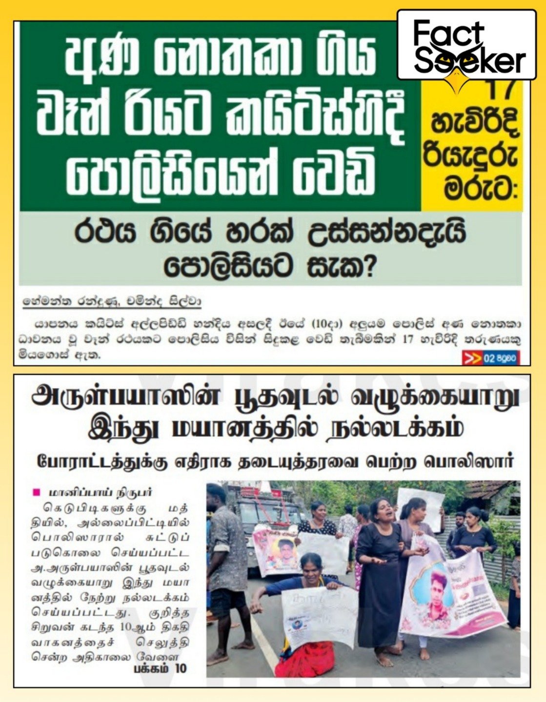Following the incident, a news report titled “Was the person shot by police a minor or a youth?” was published in the Virakesari newspaper on Friday the 13th. The report alleged that the police statement regarding the victim’s age contained factual inaccuracies and asserted that the deceased was, in fact, a 17-year-old minor.