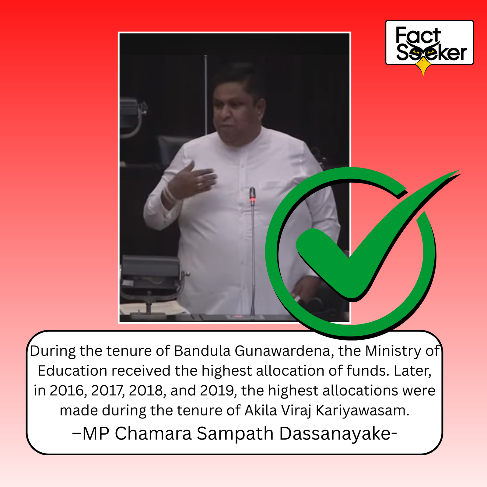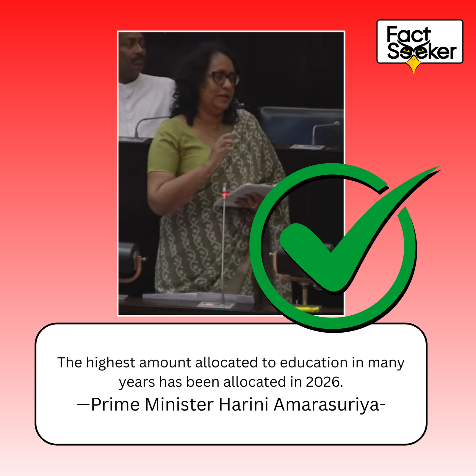 Prime Minister Harini Amarasuriya and MP Chamara Sampath Dasanayake both accurately cited education budget figures, reflecting past allocations and the 2026 increase, FactSeeker confirms.