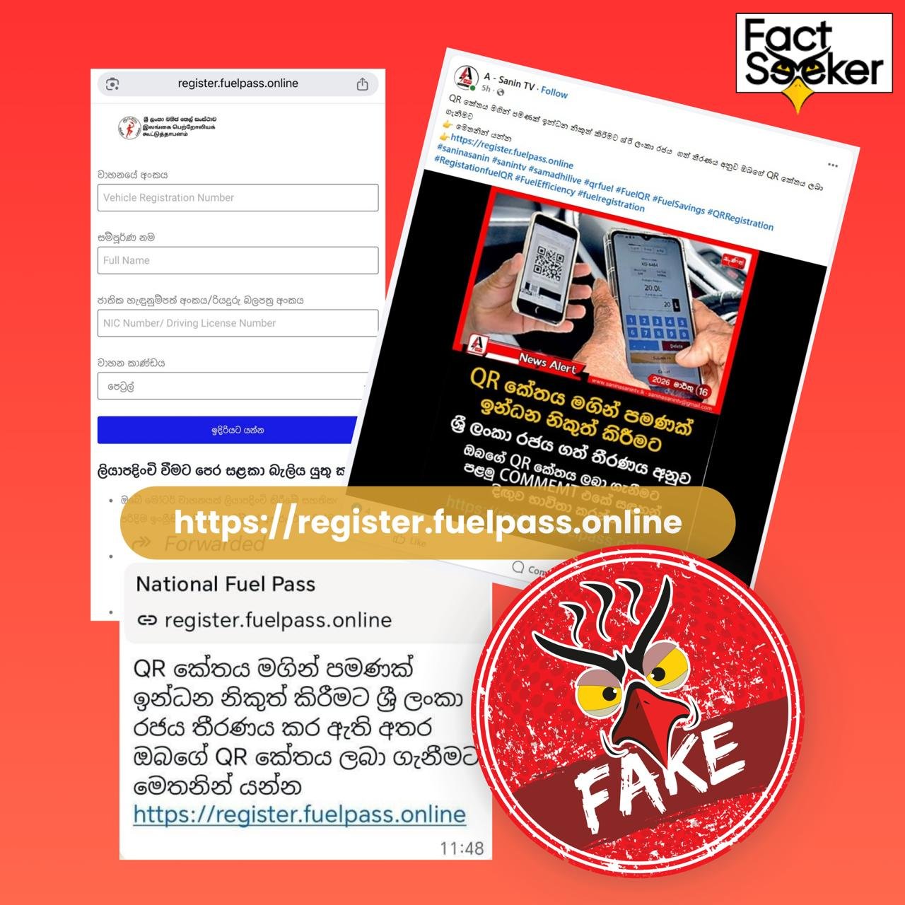 Viral posts on WhatsApp and Facebook claim that the government has launched a new system to issue fuel permits and provide links such as register-fuelpass-online or other third-party URLs, urging users to “register here” to obtain their QR code.