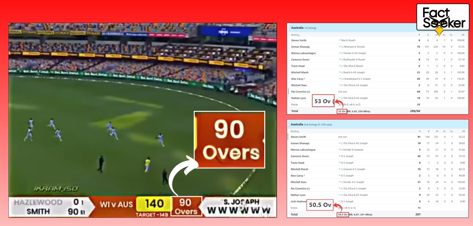 A misleading video is being widely shared on Facebook claiming that West Indies fast bowler Shamar Joseph set a world record by taking six wickets in six balls (a single over) during an international Test match against Australia.