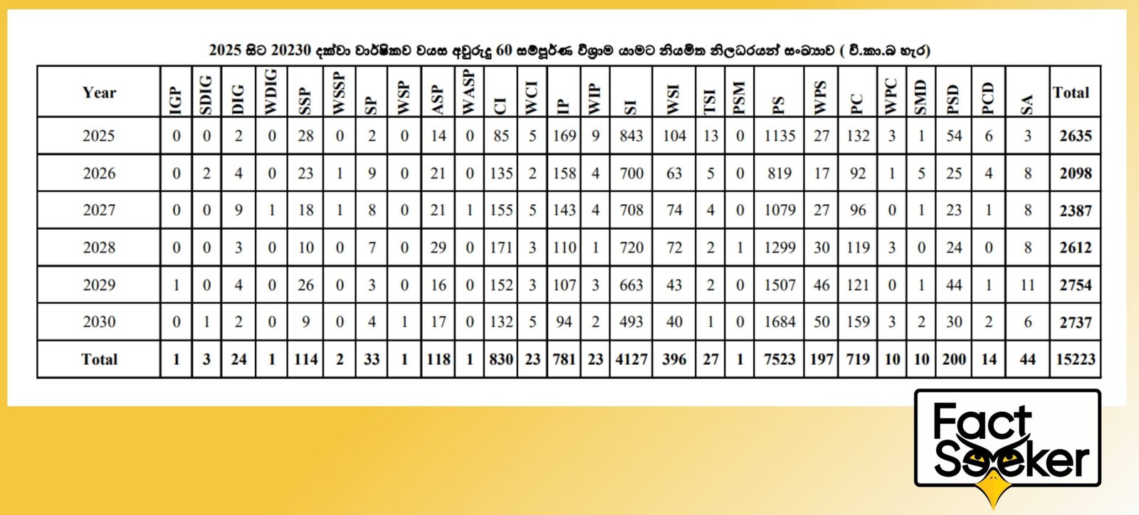To verify the accuracy of the MP’s statement, FactSeeker contacted the Ministry of Public Security and obtained the official retirement projections for both the Police Service and the Special Task Force (STF).