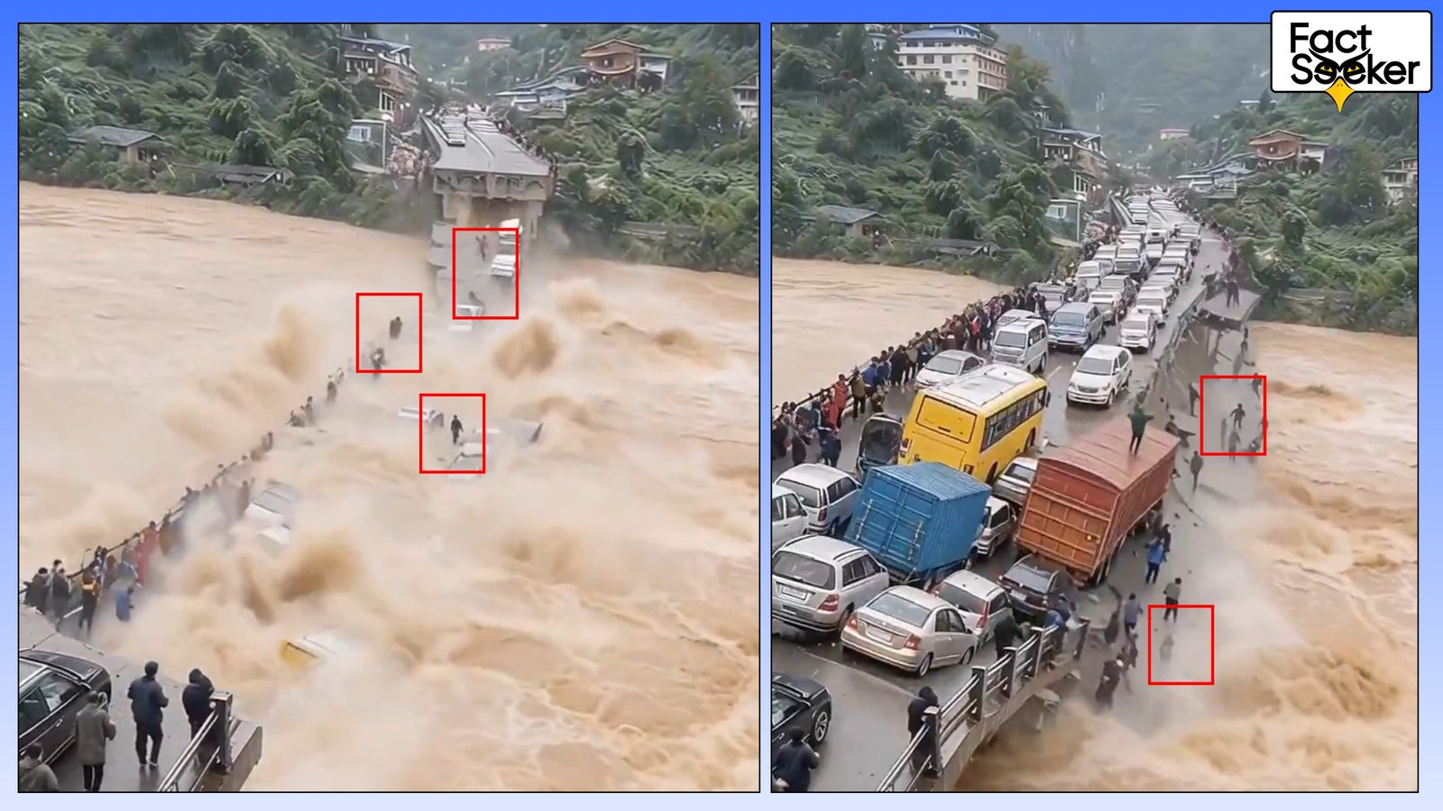 A terrifying video showing a bridge collapsing due to severe weather, plunging vehicles and people into the river below, has been circulating widely online. The video went viral on ‘X’ (formerly Twitter) with the caption, “This is absolutely terrifying to watch.”