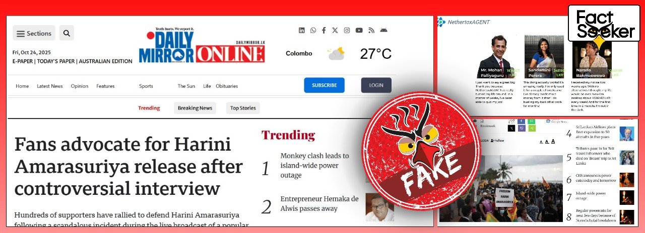 මේ අනුව පහසුවෙන් මුදල් ඉපයීමේ ක්රම සහ එවැනි වීඩියෝ ඇතුලත් කර ඇති වෙබ් අඩවිය ඩේලි මිර(ර්) වෙබ් අඩවියට සමාන ලෙසින් නිර්මාණය වූ ව්යාජ වෙබ් අඩවියක් බව FactSeeker තහවුරු කරගන්නා ලදී.