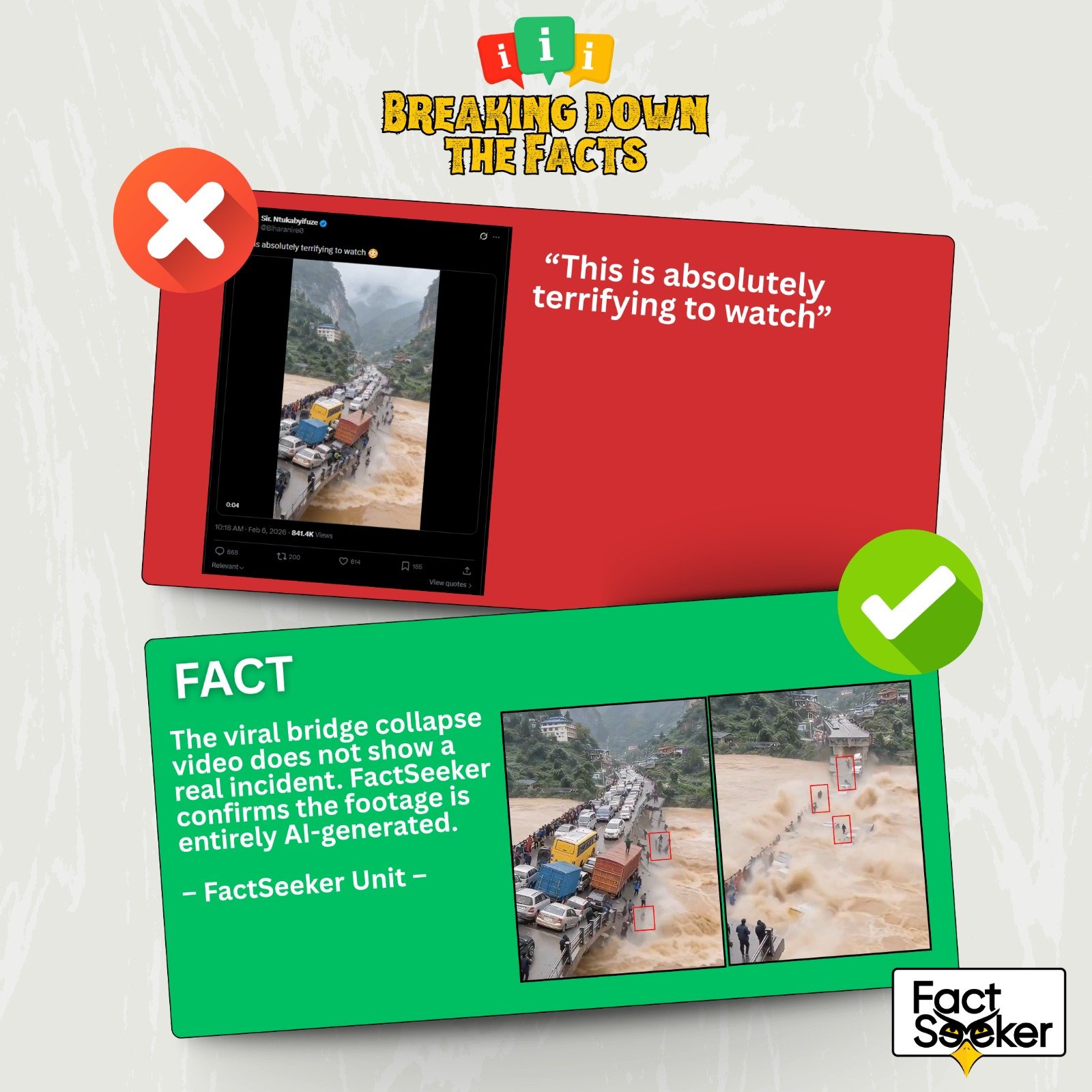 නමුත් මෙම වීඩියෝවේ දර්ශන ‘Reverse Image Search’ තාක්ෂණය ඔස්සේ පරීක්ෂා කිරීමේදී, මෙවැනි අනතුරක් සිදු වූ බවට කිසිදු විශ්වාසදායක පුවත් වාර්තාවක් හෝ නිල සමාජ මාධ්‍ය සටහනක් හමු නොවීය. ප්‍රධාන පෙළේ ජාත්‍යන්තර මාධ්‍ය පවා මෙවැනි පුවතක් වාර්තා කර නොතිබුණි.