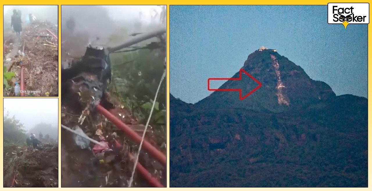මේ දිනවල පවතින ආපදා තත්වය හේතුවෙන් රට පුරා සිදුවී ඇති ව්යසනකාරී වාතාවරණයන් පිළිබදව සමාජ මාධ්ය ඔස්සේ බොහෝ තොරතුරු සංසරණය වේ. ඒ අතර ශ්රී පාදස්ථානය පිහිටි සමනල කන්දෙහි ද නායයෑමක් සිදුවී ඇති බවට පුවතක් සමාජ මාධ්ය ඔස්සේ සංසරණය වන බව FactSeeker හට නිරීක්ෂණය විය. ඒ සම්බන්ධයෙන් සොයා බැලීමේදී නායයෑම දුර සිට දිස්වන ආකාරය දැක්වෙන ඡායාරූප හා මහගිරිදඹය ආසන්නයේ නායගොස් ඇති බවට වීඩියෝ කිහිපයක් ද සංසරණය වන බව අනාවරණය විය.