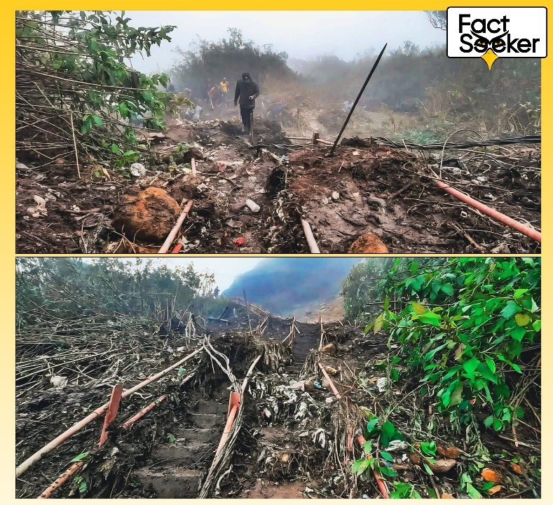 ශ්රී පාදස්ථානය ආශ්රිත ප්රදේශය නායයෑමකට ලක්ව ඇති බවට සංසරණය වූ ඡායාරූපය සම්බන්ධයෙන් පසුව අප විමසා බැලීය. එම ඡායාරූපය තුළ දිස්වන ආකාරයට මහගිරිදඹය ප්රදේශයෙන් මඩ සහිත ජල පහරක් ගලා එන ආකාරය දිස්වේ. සමාජ මාධ්ය තුළ මෙය සංසරණය වී තිබුණේ නායයෑමක් ලෙසය. මේ සම්බන්ධයෙන් පසුව ශ්රී පාදස්ථානාධිපති ස්වාමීන් වහන්සේ දක්වා තිබුණේ Clean Sri Lanka වැඩසටහනට සමගාමීව ශ්රී පාදස්ථානයේ සිදුකරනු ලැබූ පිරිසිදු කිරීමේ කටයුතු වලින් එක්වූ කැළිකසල වර්ෂාවට සේදී යාමෙන් මෙම තත්වය ඇතිවී ඇති බවය. එම වැඩසටහන නොවැ.25 වනදා පවත්වා ඇත. ඒ පිළිබදව මාධ්ය හරහා කළ පළකිරීම් ද සොයා ගැනීමට FactSeeker හට හැකි විය.